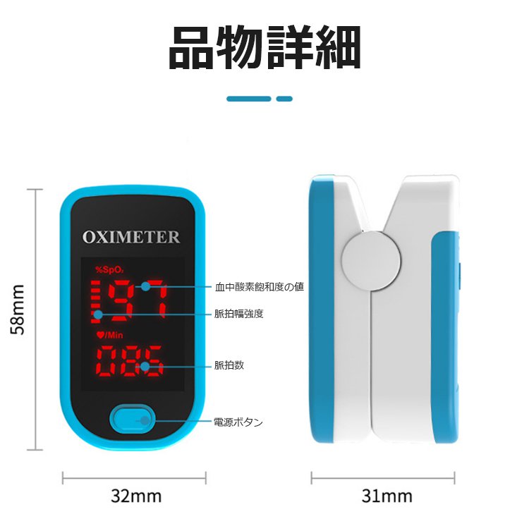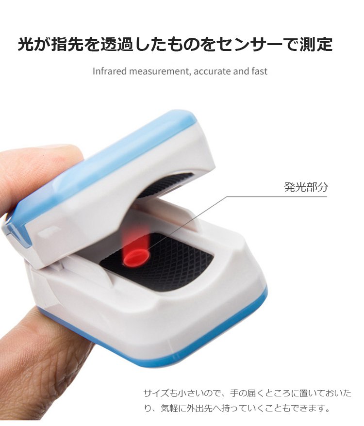 血中酸素濃度計【指をはさむだけの 簡単測定】6秒で急速測定