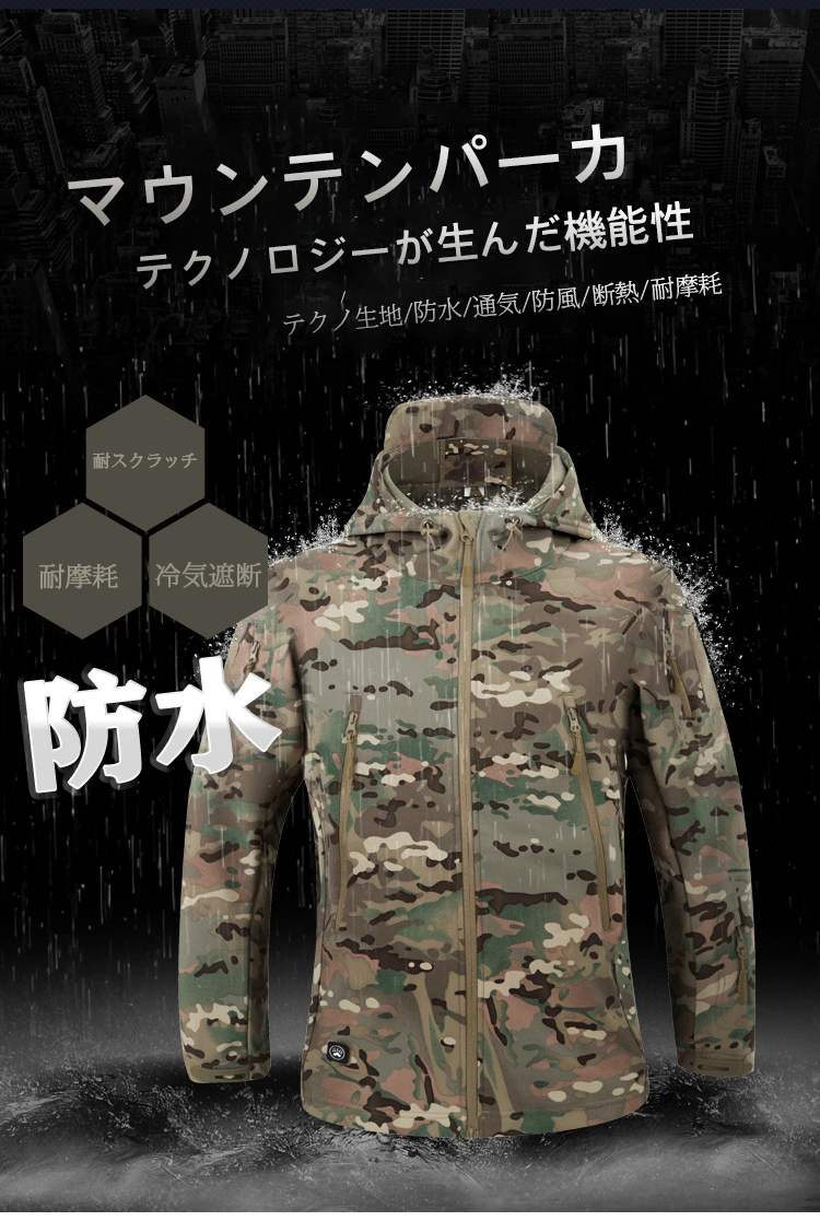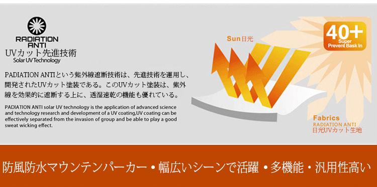 登山·アウトドアにも最適、マウンテンパーカ、テクノロジーが生んだ機能性、テク)生地/防水/通気/防風/断熱/耐摩耗